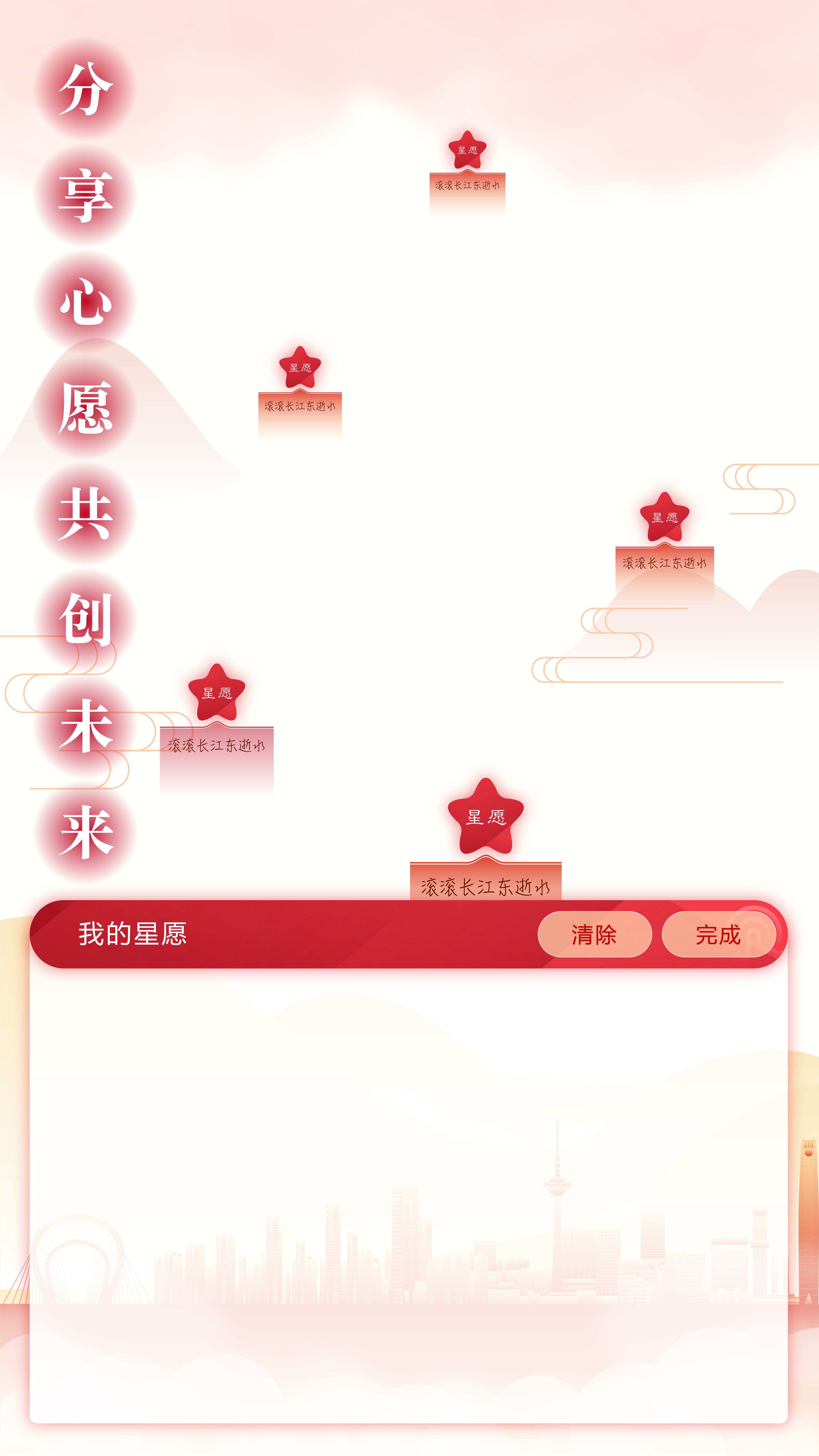 系統(tǒng)功能包括:手寫輸入星愿;動(dòng)畫效果;星愿展示等。參觀者以手寫觸屏互動(dòng)的形式寫出自己的心愿,形成滾屏顯示的心愿墻。